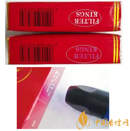 真煙“FILTER KING”字樣經(jīng)紫外光照射后由白色變成紫紅色,停止照射后,紫紅色會(huì)逐漸消退;“FILTER KING”字樣經(jīng)紫外光照射后不變色的為假煙。.鑒別真假“中華”時(shí)需要借助紫光燈、放大鏡等檢驗(yàn)工具。